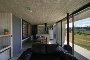 This is a plot of land located in a town belonging to the second belt of the Buenos Aires outskirts. This is a traditional area of farmhouses that, after the construction of the Western Highway, is being gradually converted and transformed into a permanent living area. In this semi-rural environment, with very few neighboring buildings, the project had to be conceived without all the information that a well-established neighborhood provides.