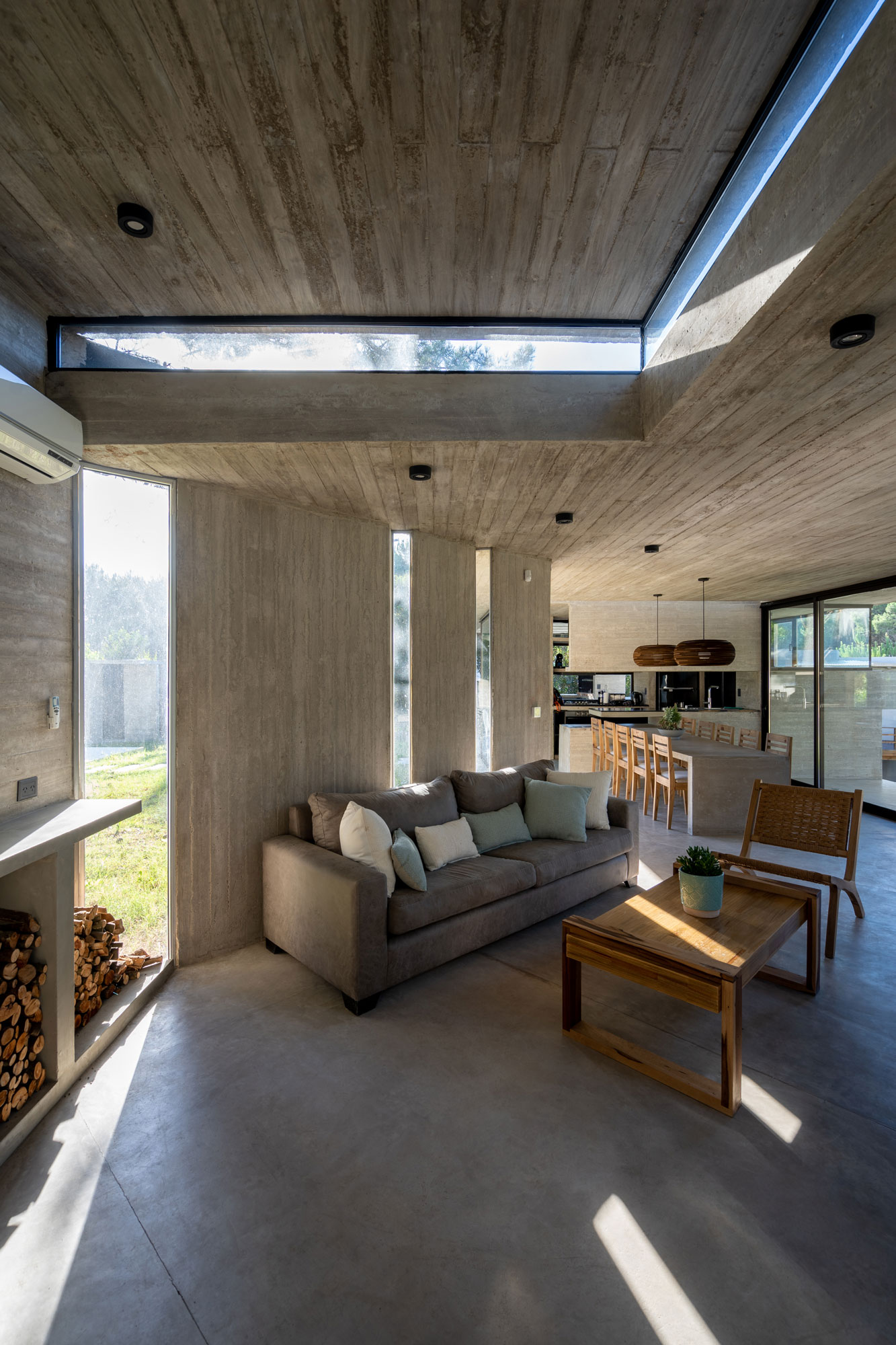 El encargo proyectual consistió en una vivienda versátil, apta tanto para el uso de sus propietarios como para la renta temporal en cualquier época del año. Se optó por el hormigón visto como material protagonista, extendiéndolo incluso al equipamiento fijo. Esta decisión responde a una búsqueda de síntesis formal y un mantenimiento mínimo.